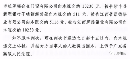 清远凤铝系列维权案:诉辉煌公司等四被告,法院判赔250余万