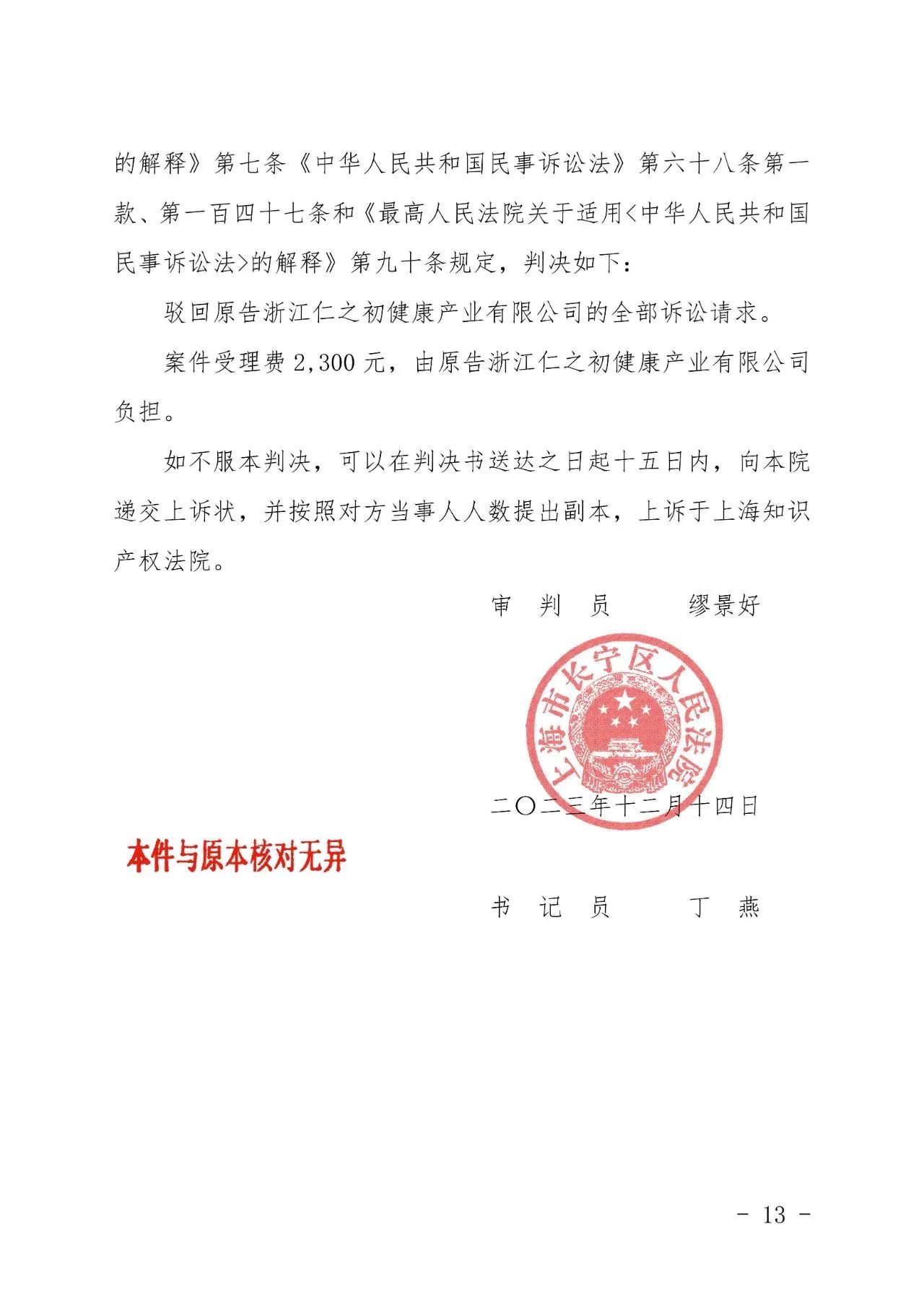 清远辉知胜诉佳讯 | “仁之初健康”著作权及不正当竞争纠纷案,法院:驳回全部诉讼请求!